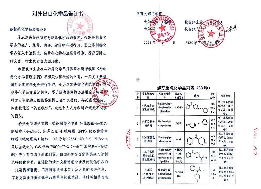 对外出口化学品告知书