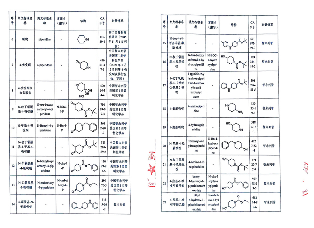 美国易制毒化学品管制清单